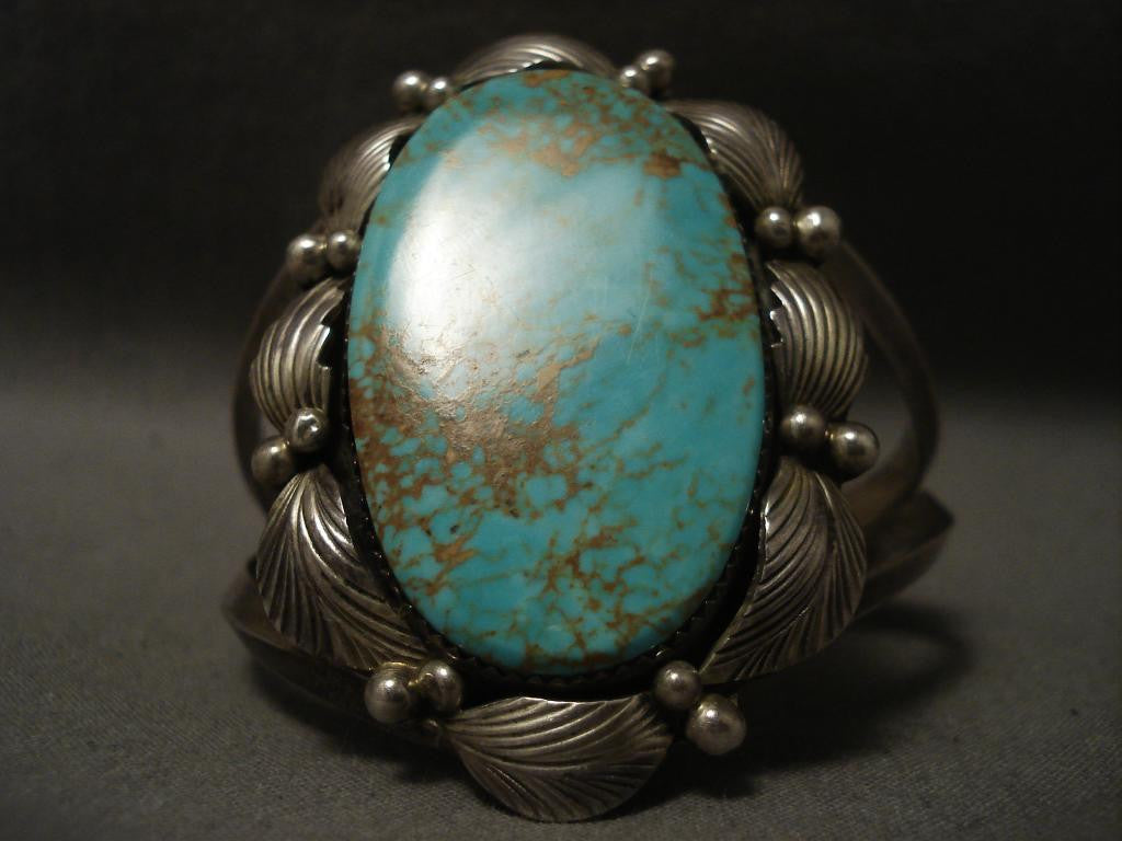 This is a museum quality vintage Navajo Adakai Family silver bracelet containing a very large old spiderweb turquoise stone. What I love about this piece are the absolutely wonderful silver leaves that beautifully surround the stone. This bracelet consists of a heavy double triangular shaped shank cuff. The center stone measures around 1-3/4" x 1". The width of the bracelet measures around 2". Signed by Navajo artist, Len Adakai . Sterling silver, marked. Cir. 1980's+. The inside end to end measures around 5-1/2" with an additional 1" gap. Sturdy 54 grams. MAKE US AN OFFER- We like to be flexible! Send us your reasonable offer on this piece(s), you have nothing to lose. The most common email we receive is from buyers who waited too long and someone bought it before they did. LAYAWAYS- Please contact us prior to purchasing and we can work out an easy 0%-interest Paypal/ Money Order lay-a-way plan that fits your budget. (Item must be of $100 value or more).
