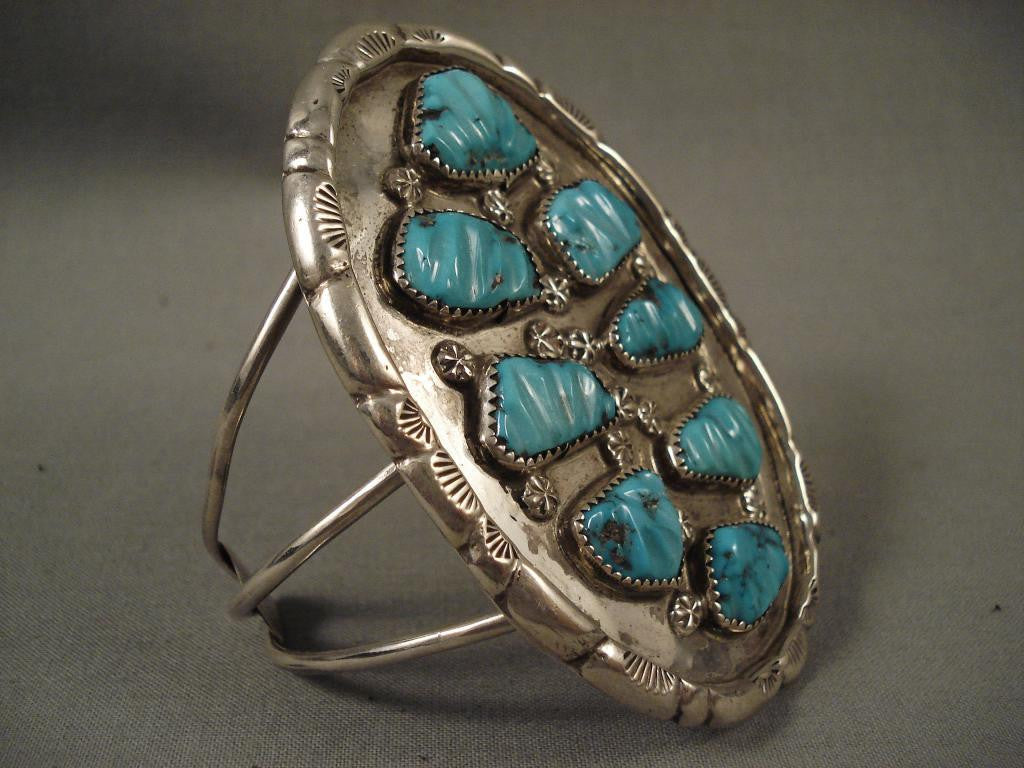 Huge Vintage Zuni leaf Turquoise Silver Bracelet