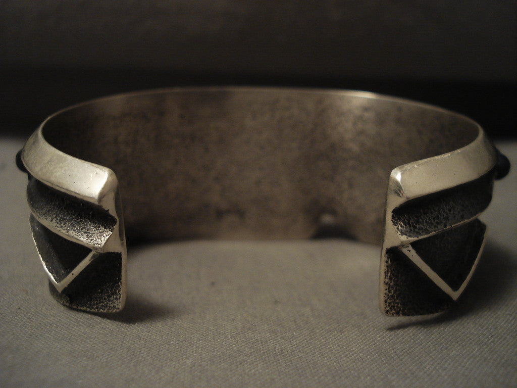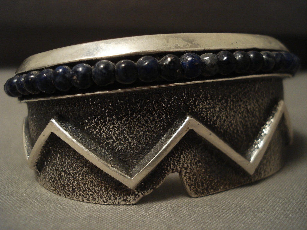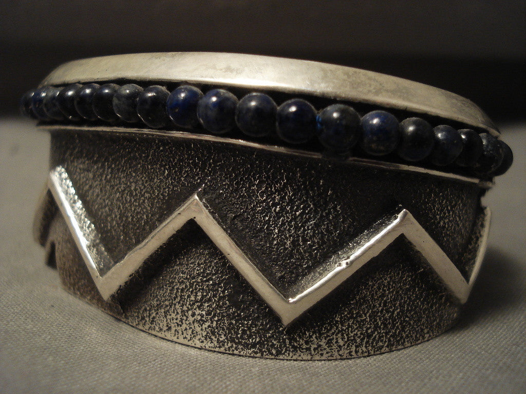 Important Navajo Aaron Anderson Lapis Ball Silver Bracelet