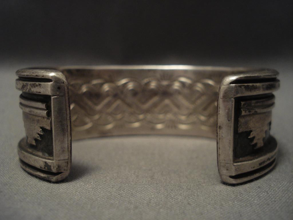 This is a museum quality vintage Navajo absolutely remarkable silver bracelet containing an array of stunning mosaic inlay of high quality stones and shells. By the way this piece was handmade by the famous artist Burt George. Burt is known for his absolutely stunning inlays and geometric patterns. What makes this piece unique is that it has three of Burt's signature techniques which also includes the heavily stamped internal cuff. This piece is very heavy and is one of his finer vintage pieces. SInce it is one of his vintage pieces it is more rare. Located on this bracelet is Lone Mountain turquoise, imperrial lapis lazuli (which is the finest lapis in the world), Carico Lake turquoise, coral, and spiny oyster shell. Resting on the inside of the cuff are marvelous geometric stampings. The width of the bracelet measures around 1". Signed by Navajo artist, Burt George . Sterling silver, marked. Cir. 1980's+. The inside end to end measures around 5-1/2" with an additional 1-1/4" gap. Sturdy 100 grams. MAKE US AN OFFER- We like to be flexible! Send us your reasonable offer on this piece(s), you have nothing to lose. The most common email we receive is from buyers who waited too long and someone bought it before they did. LAYAWAYS- Please contact us prior to purchasing and we can work out an easy 0%-interest Paypal/ Money Order lay-a-way plan that fits your budget. (Item must be of $100 value or more).
