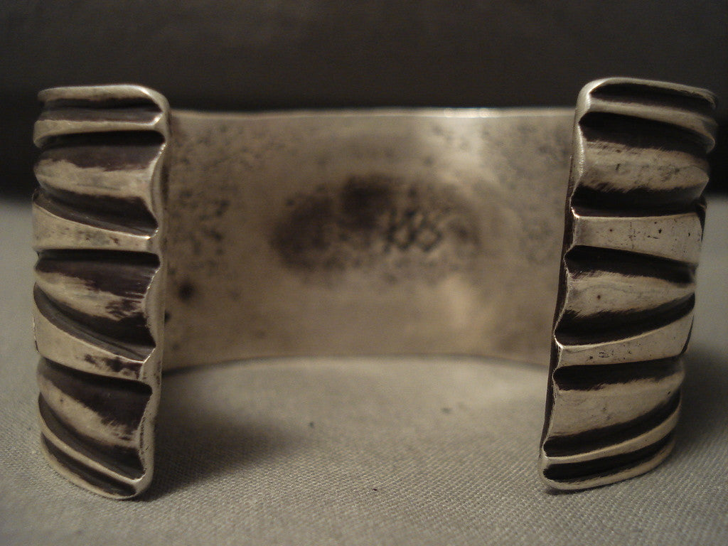 Intense And Quality Silver Work Navajo #8 Turquoise Silver Bracelet