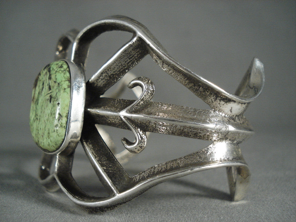 Lime Green Turquoise Vintage Navajo Sterling Silver Bracelet-0 Huge!