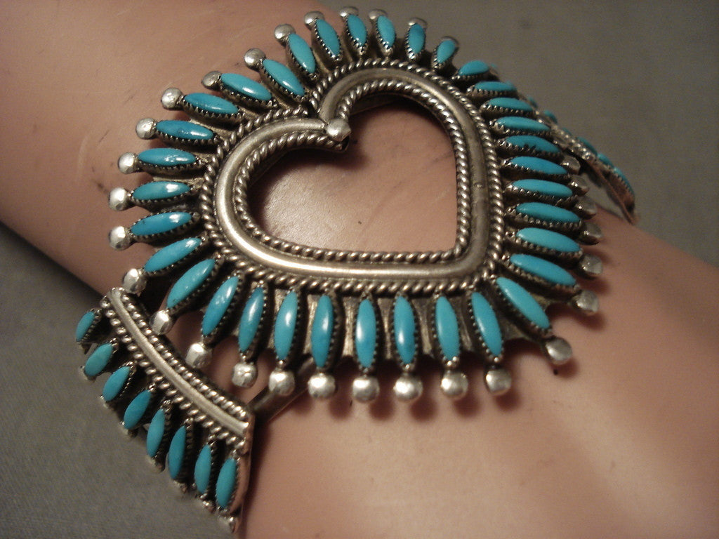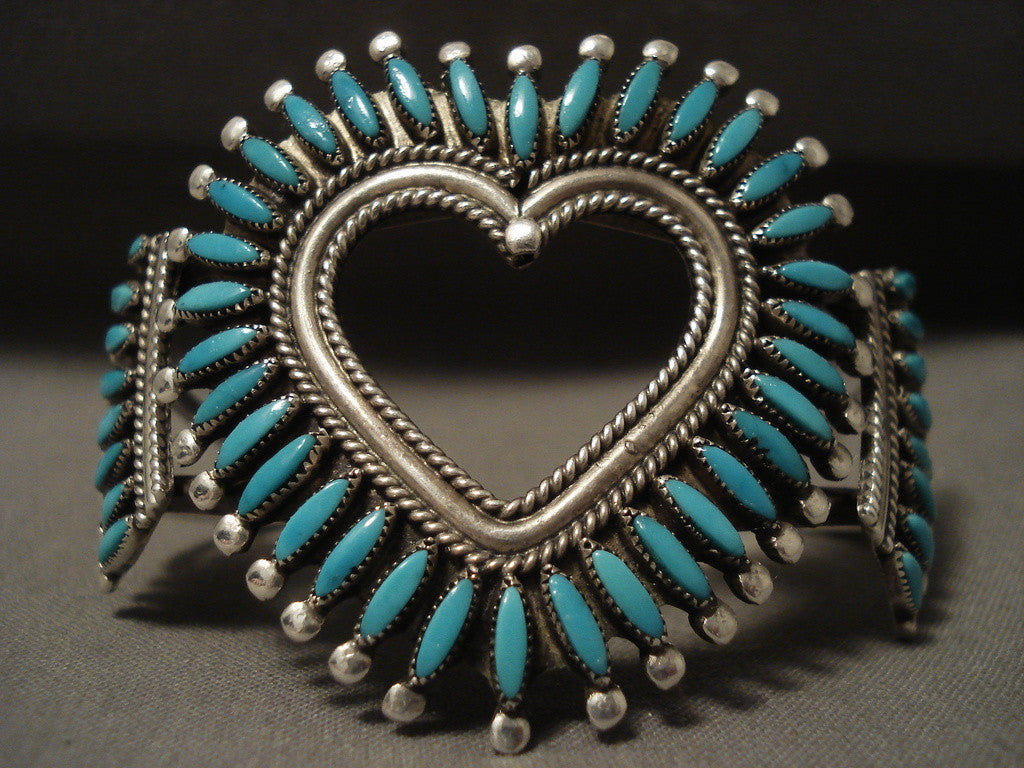 Museum Huge Vintage Zuni 'Heart Of Love' Silver Bracelet Old