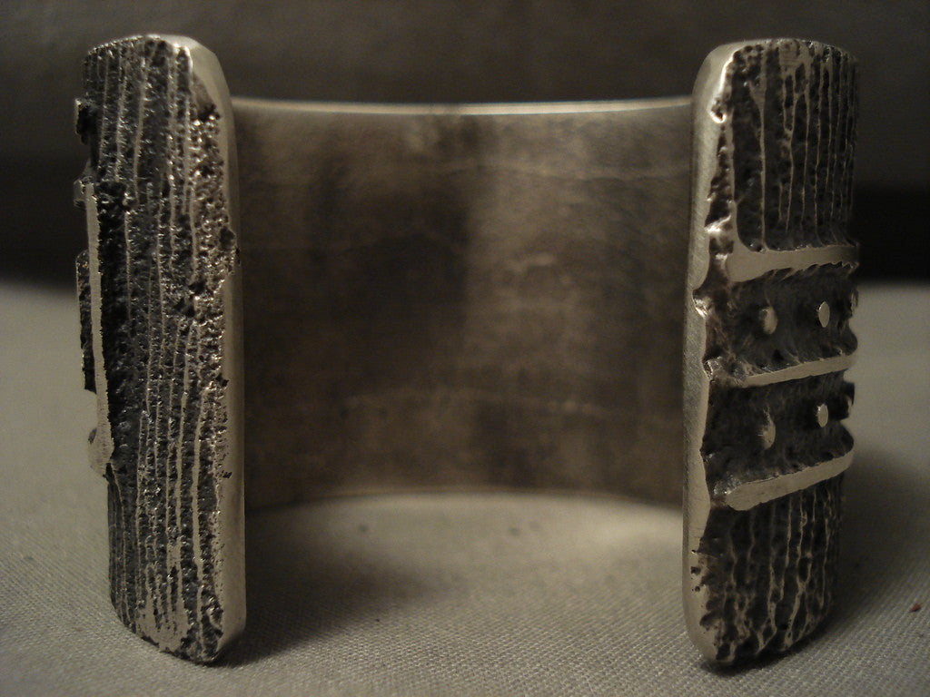 Museum Navajo #8 Turquoise Geometric Wave 123 Grams Silver Bracelet