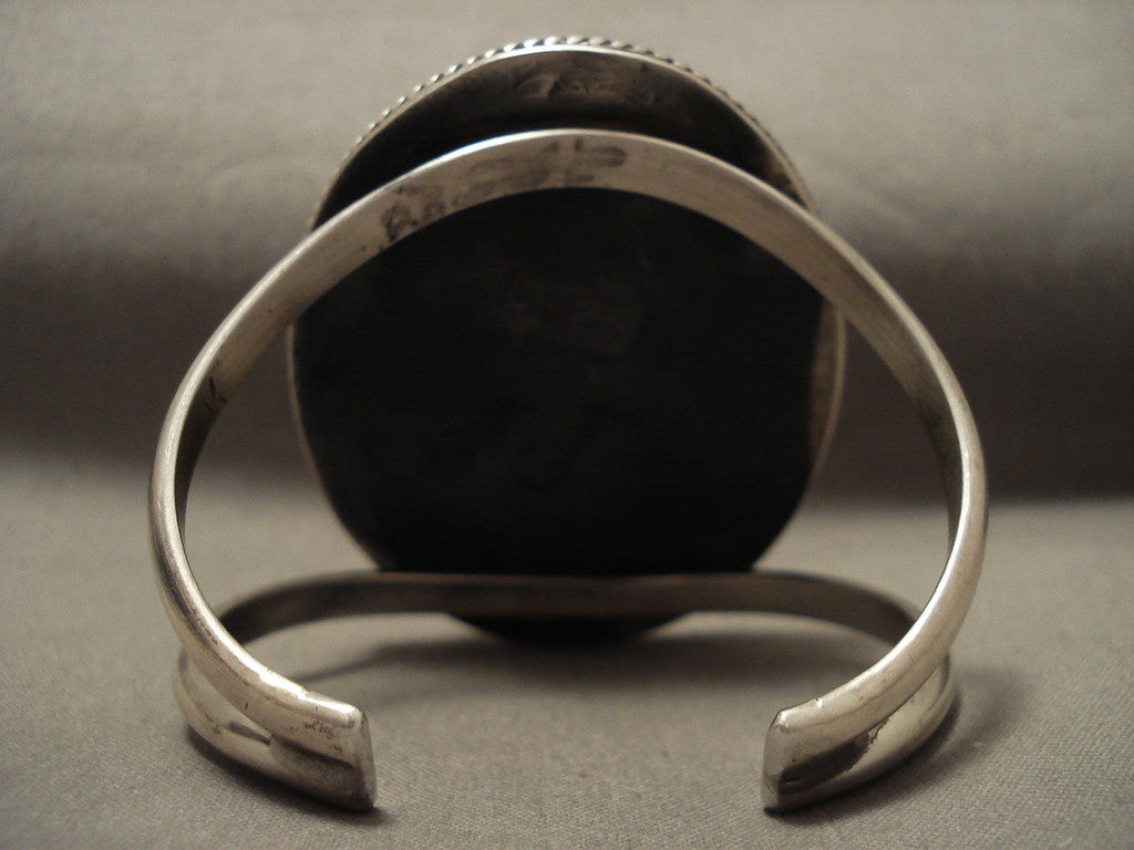 Natural And Deep Blue Gem Turquoise Vintage Navajo Silver Bracelet Old